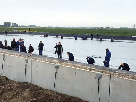 Aardbevingsbestendige zak voor 5000 kuub mest uitgerold