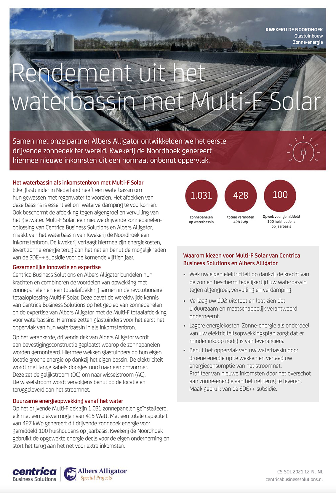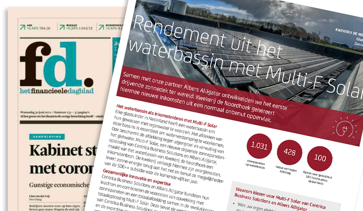Samen met onze partner Centrica Business Solutions Nederland, ontwikkelden we het eerste drijvende zonnedek ter wereld. Vandaag een artikel over alle voordelen van het Multi-F Solar voor de tuinder in de “Toekomst van de industrie” bijlage van het Financieele Dagblad.
