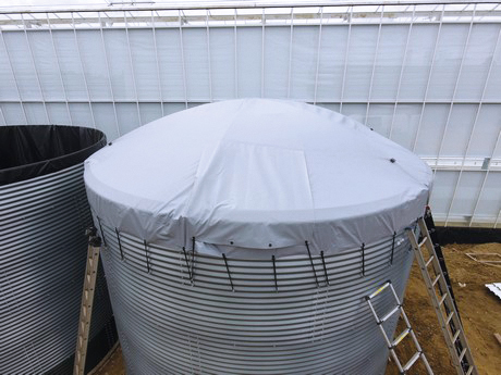The research was mainly directed at the simplification and refinement of the idea. “The frame is very light because of the aluminum and can be placed quickly with a small number of workers and without a crane. Every now and then a grower wants to clean the silo inside. That is why we have provided the cover with a reinforced manhole so that the water silo is always accessible. In short: a solid and reliable cover that is affordable for every grower,” Martin summarizes. “Delivery goes via our dealers, of course. We are now working on making this construction also applicable to existing and larger silos.”