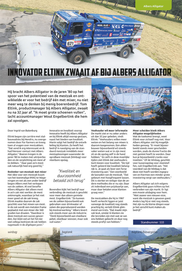 He put Albers Alligator on the track of the slurry bag’s potential in the 80s and developed one for